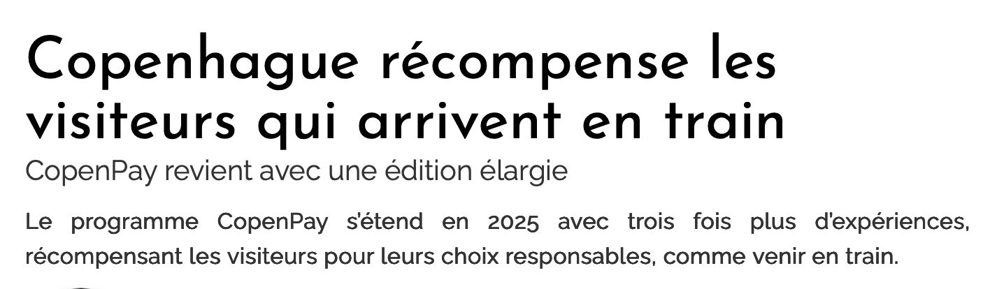 Plus de 100 destinations ont déjà été inspirées par CopenPay. "On veut montrer que c'est possible, partager nos retours, et motiver d'autres villes à agir."